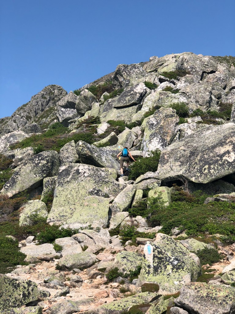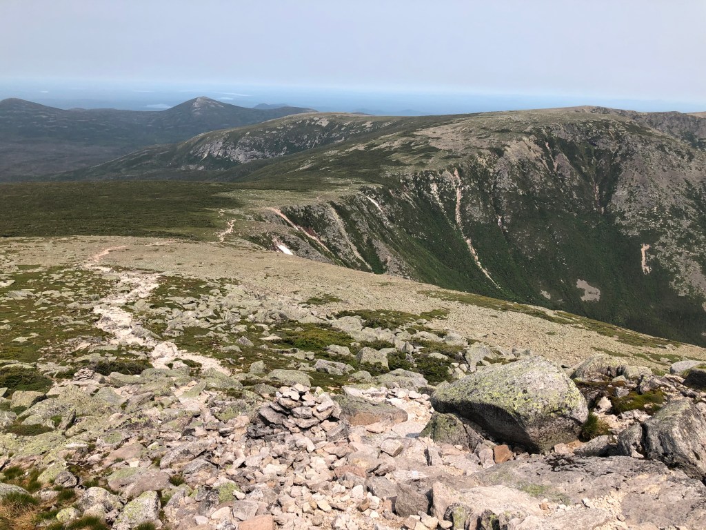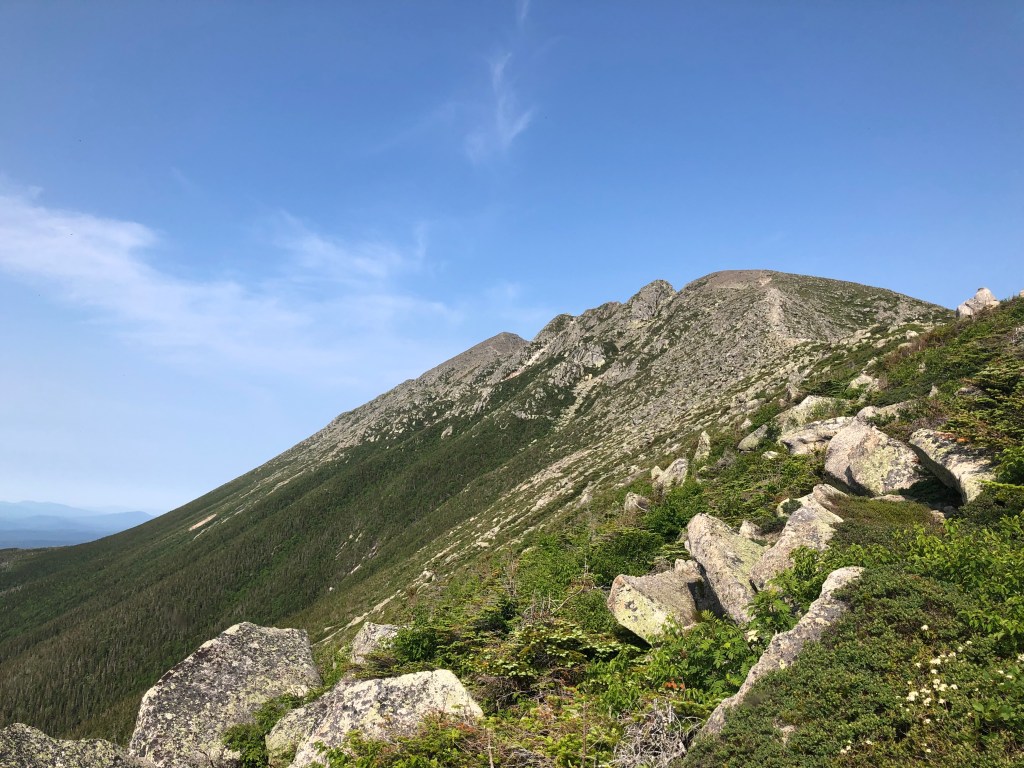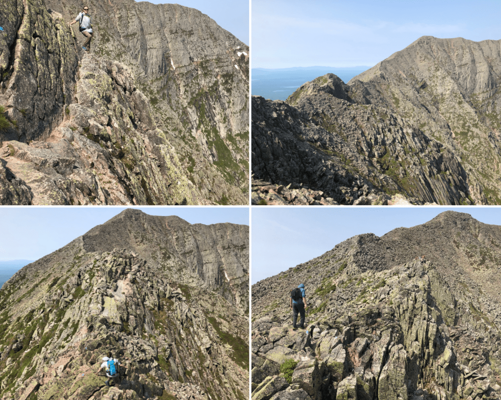 It’s 1.1 miles from Pamola Peak to Baxter Peak over a serrated ridge with a 2,000′ drop into South Basin. This is way more extreme than any knife edge in the whites of NH. There’s a really tricky spot where you drop right before Chimney Top. You really have to pay attention to what you’re doing…