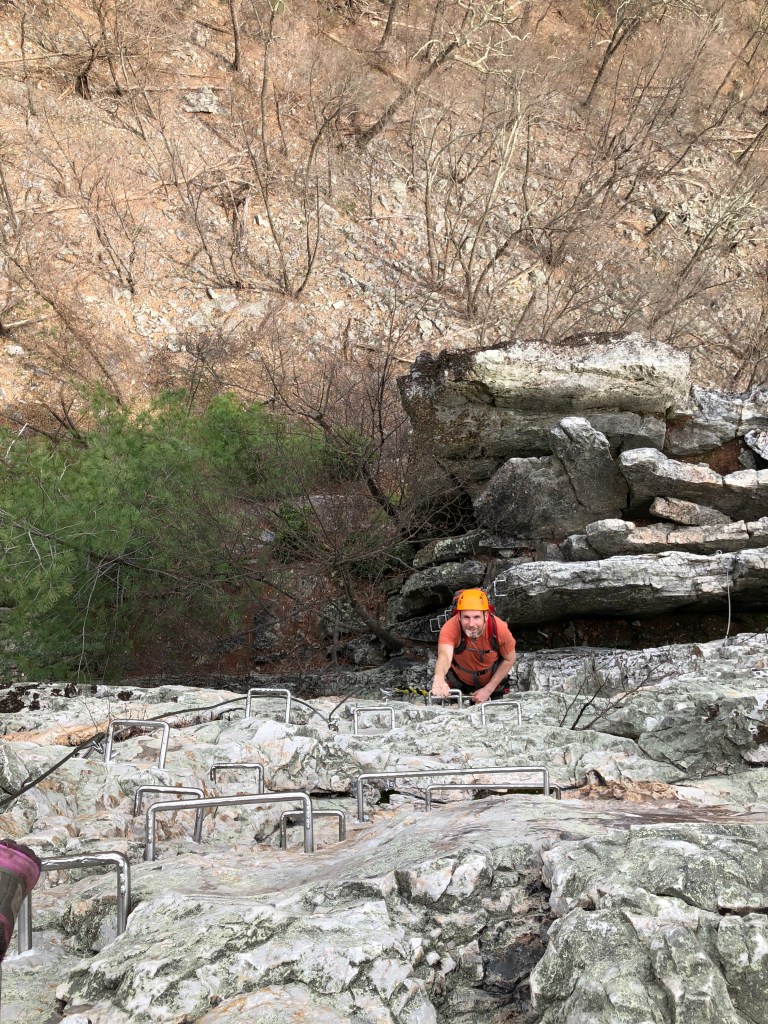 Nelson Rocks is a rock formation owned and operated by NROCKS Outdoor Adventures. John and I chose to do the Via Ferrata adventure; neither of us had done anything like this before. For the nerds out there: (1) Via Ferrata is Italian for “iron path.” They were created in the Dolomites and were instrumental during World War I for getting military and equipment in position in the mountains. (2) Nelson Rocks is a fin (actually a double fin): a narrow wall of hard sedimentary rock that remains after surrounding rock erodes away.