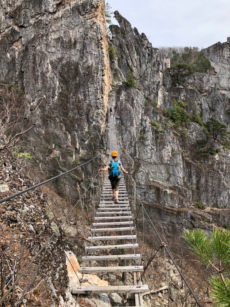 We made our way up the first fin to the suspension bridge (150′ high and 200′ long). The only thing that had me nervous about crossing this was how much it would move and if I would feel motion sickness from it; I was pleased that I had no problem on it, at all, though I got across it as quickly as I could.