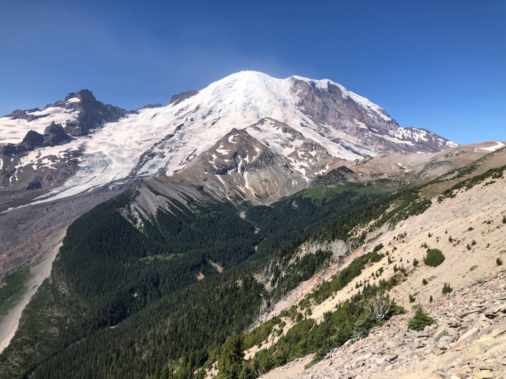 We broke down camp early and drove to the Sunrise (northeast) area of Rainier National Park. Along with the Paradise, this is another popular area and parking was a concern; we arrived early enough that it wasn’t an issue for us.