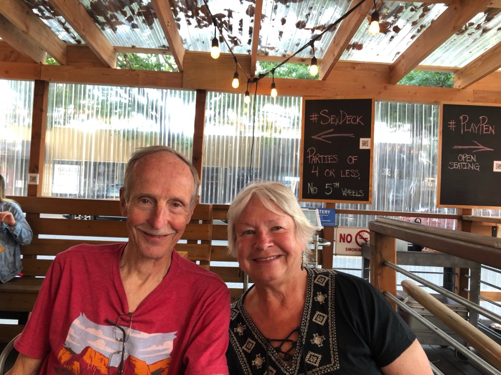 We also love to just walk around in cities; you never know what you’re going to see. For example, we found a wallet on the ground and (hopefully) were good citizens by turning it over to a security person inside a building. We witnessed a gathering where a white guy was cursing at a black man and there was a UFO sign, but we don’t know who it belonged to. In another area we walked by the Sonic Bloom and listened to a guy play his electric violin. In certain areas the signs of homelessness are unavoidable, and tents line the streets; there’s also the smell of human piss in the air.