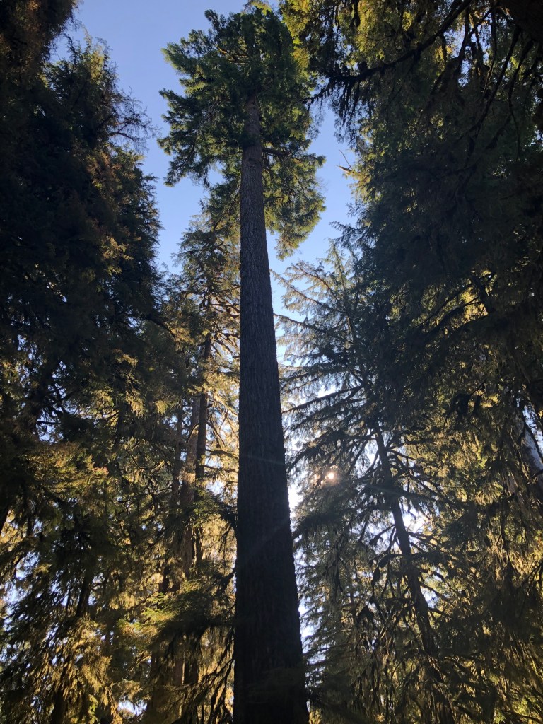 For the nerds: I learned about “nurse logs.” These dead and fallen trees supply nutrients to various forms of life, including new trees. You can see evidence of where a nurse log used to be with the buttressed roots of giant trees. I was on the lookout for this on every walk after learning about this interesting fact.
