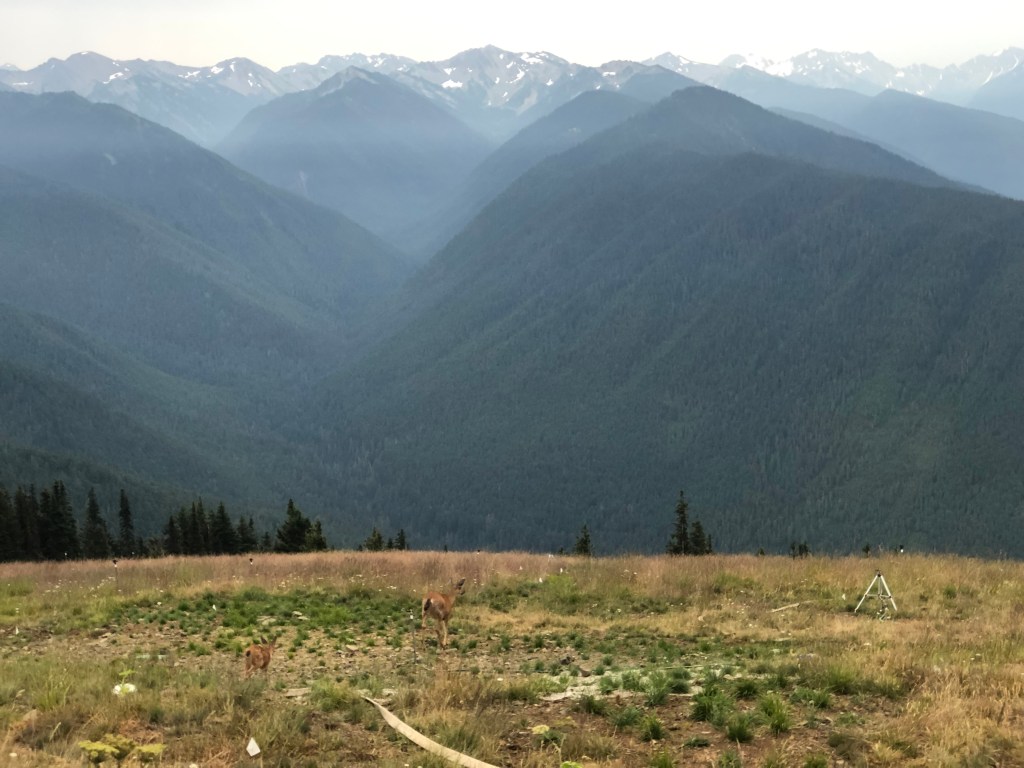 Once at the Hurricane Ridge Visitor Center, we were lucky enough to see two deer feeding in the grass. We watched them for a while before doing some of the small hikes right from the center’s parking lot: the Big Meadow Loop, the Cirque Rim Trail and part of the High Ridge Trail. On the path next to the parking lot was a marmot. There were actually lots of marmots around; I had never seen so many marmots before. Little did I know that there would be a lot more in the near future.
