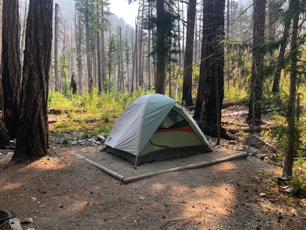 We miraculously got an “open” spot at Newhalem Campground. It had some of the nicest bathrooms of any national-park campground we’ve visited. Tall trees were blackened from the Goodell fire in August 2015. Because of that we had views of some of the mountains surrounding us.