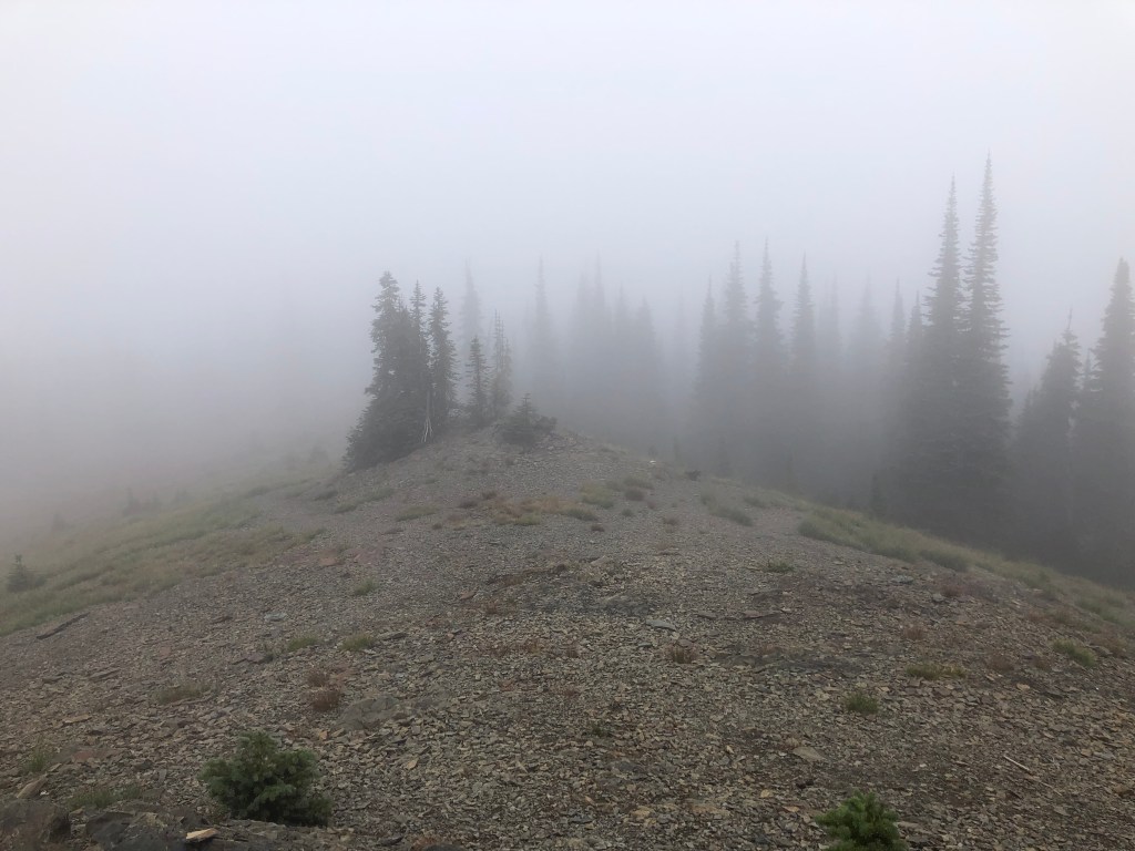 It was a foggy and chilly hike. We carried our bear spray and periodically called out, “Hey, bear.” It seemed like the perfect set up to see wildlife, but there was none to be had for us on this day. The climb was steady; we were actually happy about the switchbacks.