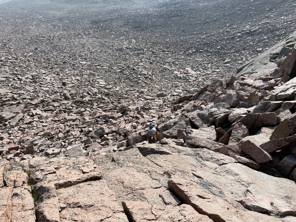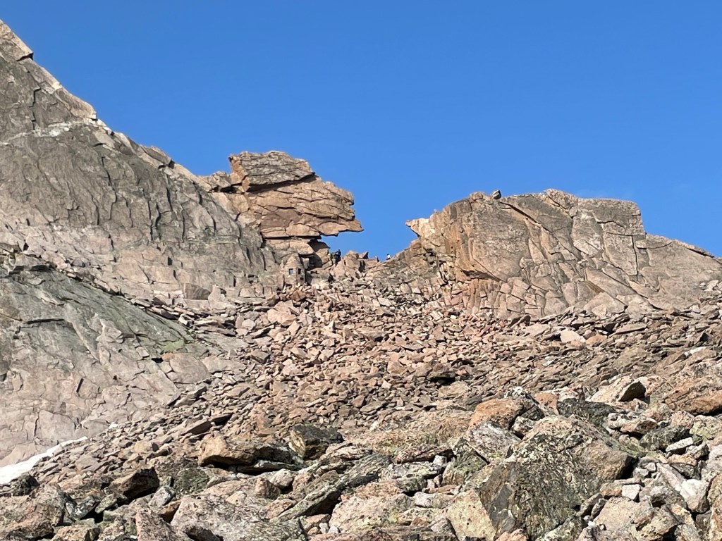 Other hikers, who were descending from the top, were telling us that what we saw wasn’t a false summit, and that we were just about there. That is exactly what you want to hear when you’re so exhausted and you know that you’re only halfway through your hike. John and I found a spot to sit and chill for a few minutes. There was a guy who we started chatting with who had just rock-climbed to the top; I’m always in awe of people who do that. He was cool, and there was another guy who kind of just moved over to join the conversation (we found people from Colorado to be so friendly). Soon we decided that it was time, and we all went our separate ways.
