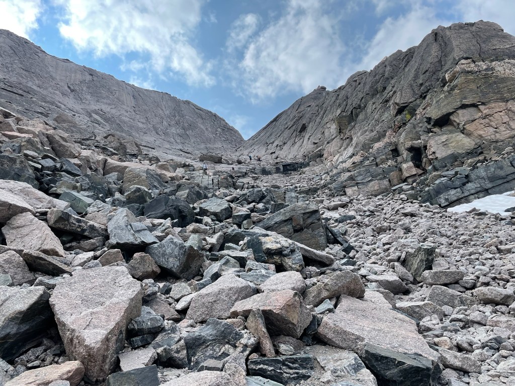 We were camping at Glacier Basin Campground, so we accessed Long’s Peak via the Storm Pass Trailhead, making the already difficult day just a little bit longer. People typically start the hike up this monster at 2:30 am to make it off the summit before the threat of thunderstorms. An experienced hiker, who we had met on our hike up Castle in the Elk Mountain Range, said that we could probably start at 4; we were on the trail by 4:20.